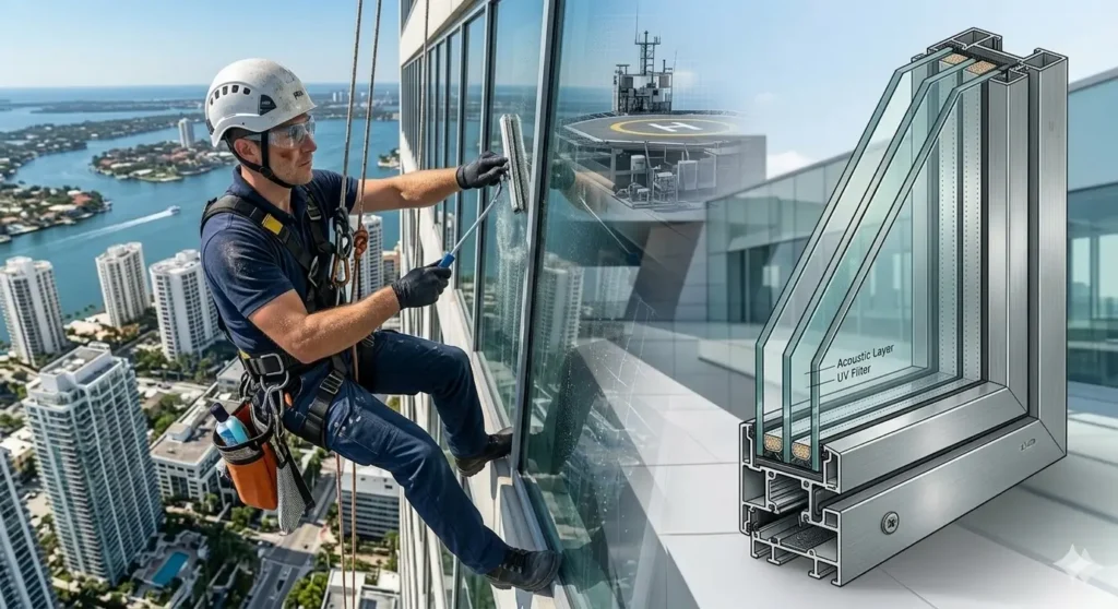 Cleaning these systems safely requires more than standard window washing equipment. Professional high-rise window cleaning services in Miami must account for glazing systems, structural sealants, and waterproofing components that protect the building envelope.