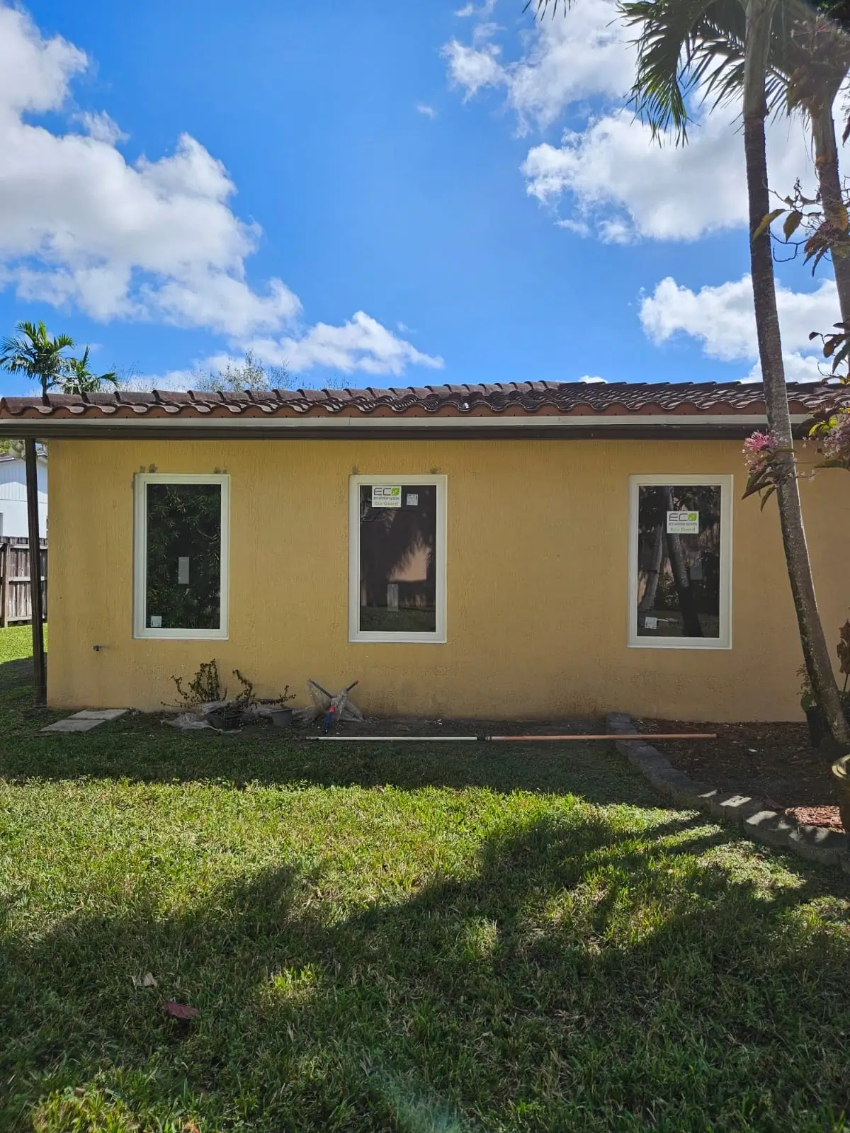 Impact window package; large-format sliding doors; waterproofing & sealing; QA testing; permit/inspection management.