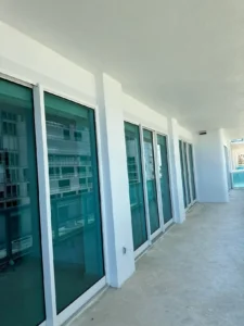 Impact window & large-format sliding-door retrofit; occupied-building phasing; QA water testing.
